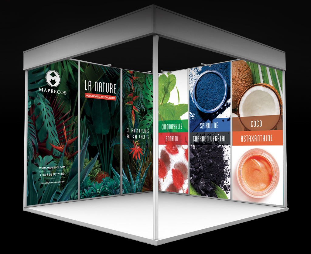 Un stand style tropical Habillage du stand de la société Maprecos pour le salon Cosmetagora 2023 dans la tendance ... Lire la suite